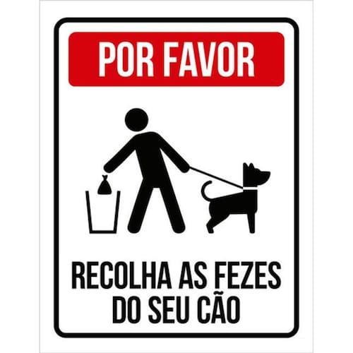 Kit 5 Placas Desenho Por Favor Recolha Fezes Seu Cão Placas de sinalizaço fabricadas com poliestireno de alto impacto PSAI de 2mm e impressão ultravioleta.