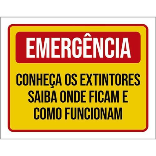 Kit 5 Placas Emergência Conheça Extintores Onde Ficam 36x46 Placas de sinalizaço fabricadas com poliestireno de alto impacto PSAI de 2mm e impressão ultravioleta.