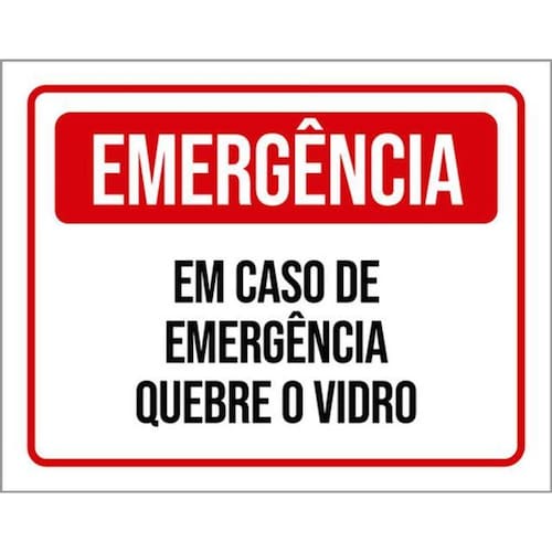 Kit 5 Placas Emergência Quebre O Vidro 36x46 Placas de sinalizaço fabricadas com poliestireno de alto impacto PSAI de 2mm e impressão ultravioleta.