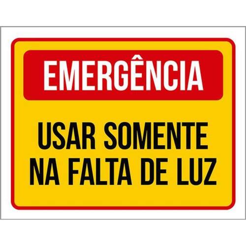 Kit 5 Placas Emergência Usar Somente Falta Luz 36x46 Placas de sinalizaço fabricadas com poliestireno de alto impacto PSAI de 2mm e impressão ultravioleta.