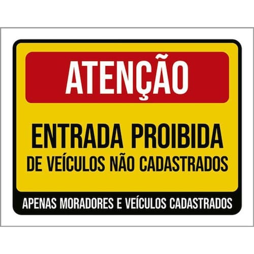 Kit 5 Placas Entrada Proibida Veículos Não Cadastrados Placas de sinalizaço fabricadas com poliestireno de alto impacto PSAI de 2mm e impressão ultravioleta.