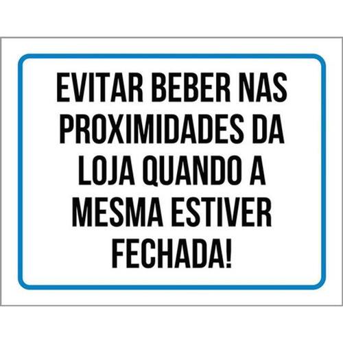 Kit 5 Placas Evitar Beber Nas Proximidades Da Loja 36x46 Placas de sinalizaço fabricadas com poliestireno de alto impacto PSAI de 2mm e impressão ultravioleta.