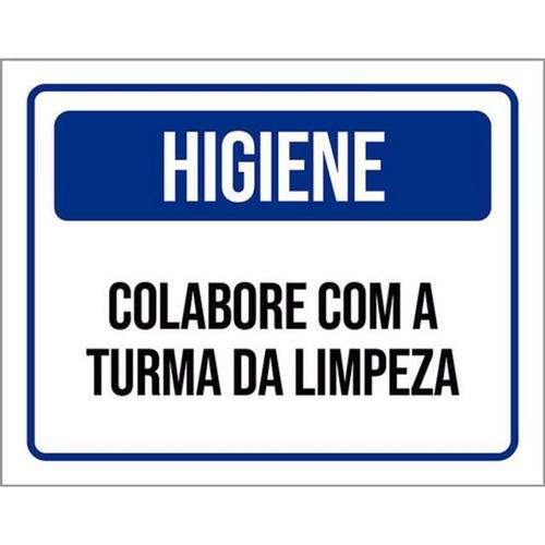 Kit 5 Placas Higiene Colabore Com Turma Da Limpeza 36x46 Placas de sinalizaço fabricadas com poliestireno de alto impacto PSAI de 2mm e impressão ultravioleta.