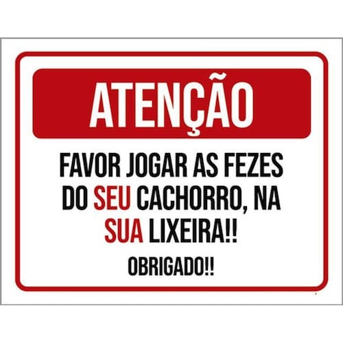 Kit 5 Placas Jogar Fezes Cachorro Na Sua Lixeira 36x46 Placas de sinalizaço fabricadas com poliestireno de alto impacto PSAI de 2mm e impressão ultravioleta.