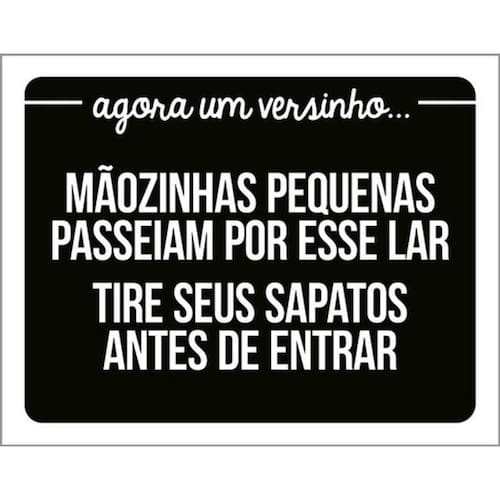 Kit 5 Placas Mãozinhas Pequenas Tire Sapatos Entrar 36x46 Placas de sinalizaço fabricadas com poliestireno de alto impacto PSAI de 2mm e impressão ultravioleta.
