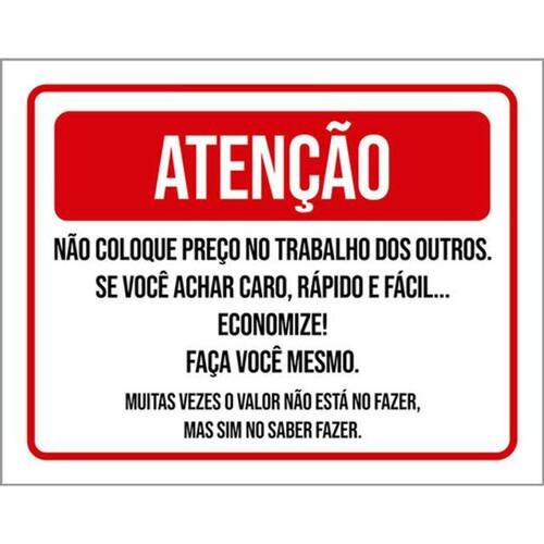 Kit 5 Placas Não Coloque Preço Trabalho Outros 36x46 Placas de sinalizaço fabricadas com poliestireno de alto impacto PSAI de 2mm e impressão ultravioleta.