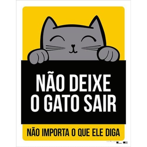 Kit 5 Placas Não Deixe Gato Sair Amarela 36x46 Placas de sinalizaço fabricadas com poliestireno de alto impacto PSAI de 2mm e impressão ultravioleta.