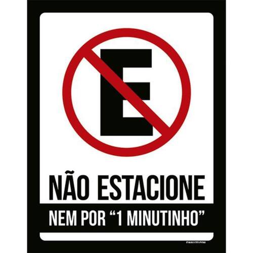 Kit 5 Placas Não Estacione Nem Por 1 Minutinho 36x46 Placas de sinalizaço fabricadas com poliestireno de alto impacto PSAI de 2mm e impressão ultravioleta.