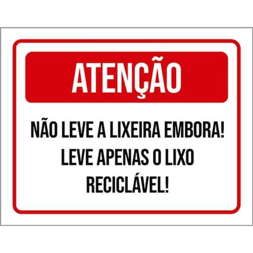 Kit 5 Placas Não Leve Lixeira Embora Apenas Lixo 36x46 Placas de sinalizaço fabricadas com poliestireno de alto impacto PSAI de 2mm e impressão ultravioleta.