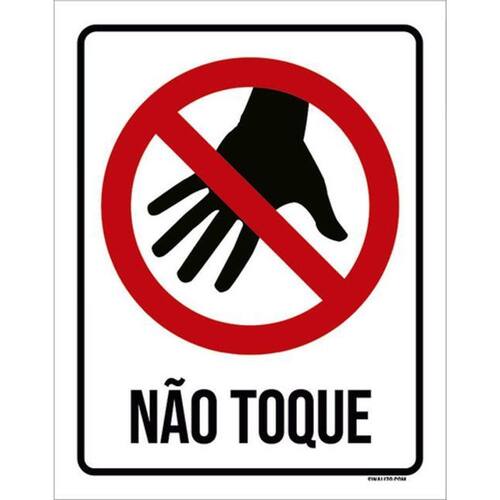 Kit 5 Placas Não Toque Mão Ícone Preto 36x46 Placas de sinalizaço fabricadas com poliestireno de alto impacto PSAI de 2mm e impressão ultravioleta.