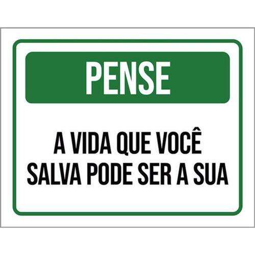 Kit 5 Placas Pense A Vida Que Salva Pode Ser A Sua 36x46 Placas de sinalizaço fabricadas com poliestireno de alto impacto PSAI de 2mm e impressão ultravioleta.