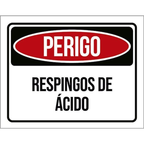 Kit 5 Placas Perigo Respingos De Ácido 36x46 Placas de sinalizaço fabricadas com poliestireno de alto impacto PSAI de 2mm e impressão ultravioleta.