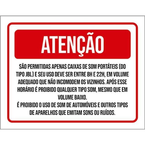 Kit 5 Placas Permitido Caixas Som Portáteis 36x46 Placas de sinalizaço fabricadas com poliestireno de alto impacto PSAI de 2mm e impressão ultravioleta.