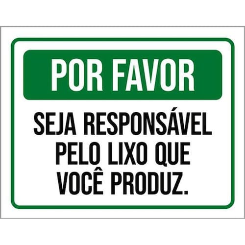 Kit 5 Placas Por Favor Seja Responsável Lixo Você Produz Placas de sinalizaço fabricadas com poliestireno de alto impacto PSAI de 2mm e impressão ultravioleta.
