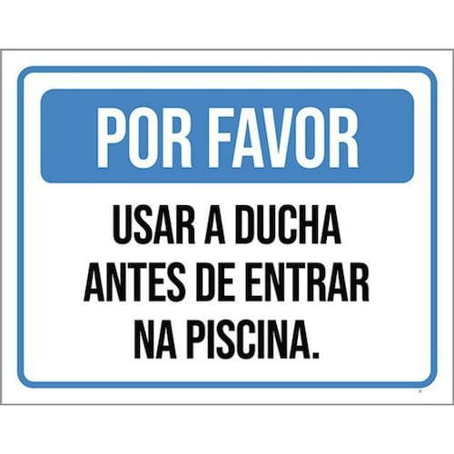 Kit 5 Placas Por Favor Usar Ducha Antes Entrar Piscina 36x46 Placas de sinalizaço fabricadas com poliestireno de alto impacto PSAI de 2mm e impressão ultravioleta.