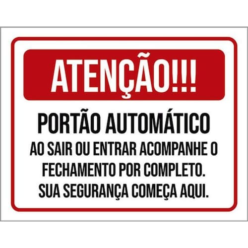 Kit 5 Placas Portão Automático Segurança 36x46 Placas de sinalizaço fabricadas com poliestireno de alto impacto PSAI de 2mm e impressão ultravioleta.