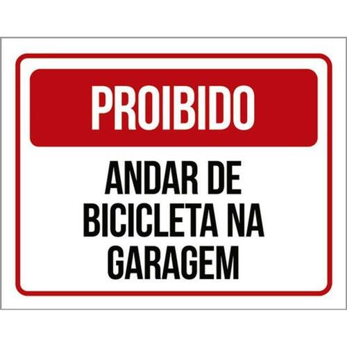 Kit 5 Placas Proibido Andar Bicicleta Na Garagem 36x46 Placas de sinalizaço fabricadas com poliestireno de alto impacto PSAI de 2mm e impressão ultravioleta.