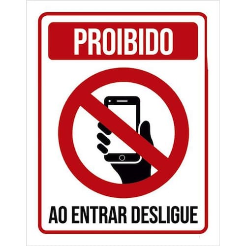 Kit 5 Placas Proibido Celular Entrar Desligue 36x46 Placas de sinalizaço fabricadas com poliestireno de alto impacto PSAI de 2mm e impressão ultravioleta.
