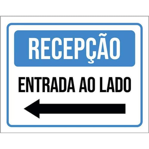Kit 5 Placas Recepção Entrada Lado Seta Esquerda 36x46 Placas de sinalizaço fabricadas com poliestireno de alto impacto PSAI de 2mm e impressão ultravioleta.