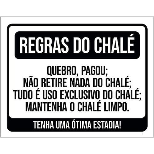 Kit 5 Placas Regras Chalé Quebrou Pagou Não Retire Nada Placas de sinalizaço fabricadas com poliestireno de alto impacto PSAI de 2mm e impressão ultravioleta.