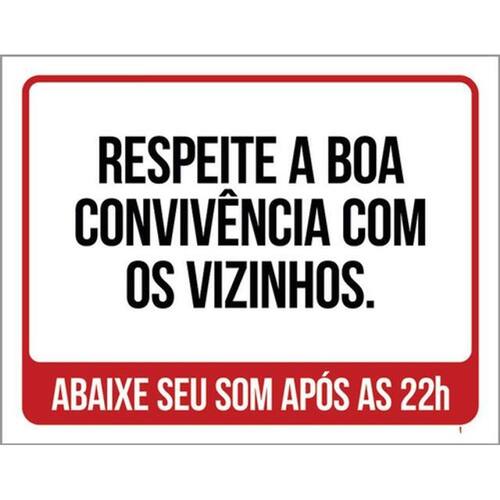 Kit 5 Placas Respeite Boa Convivência Vizinhos Abaixe Som Placas de sinalizaço fabricadas com poliestireno de alto impacto PSAI de 2mm e impressão ultravioleta.