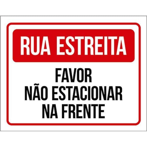 Kit 5 Placas Rua Estreita Não Estacionar Frente 36x46 Placas de sinalizaço fabricadas com poliestireno de alto impacto PSAI de 2mm e impressão ultravioleta.