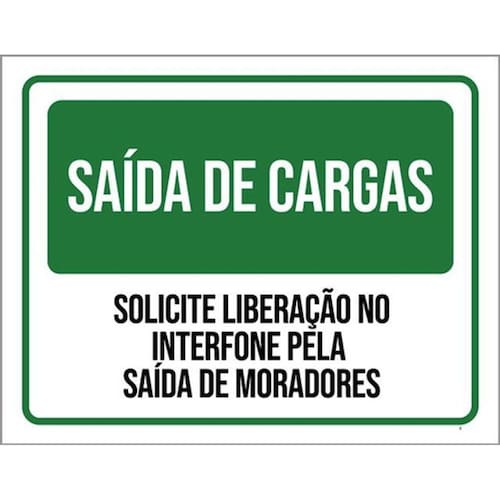 Kit 5 Placas Saída Cargas Liberação No Interfone 36x46 Placas de sinalizaço fabricadas com poliestireno de alto impacto PSAI de 2mm e impressão ultravioleta.