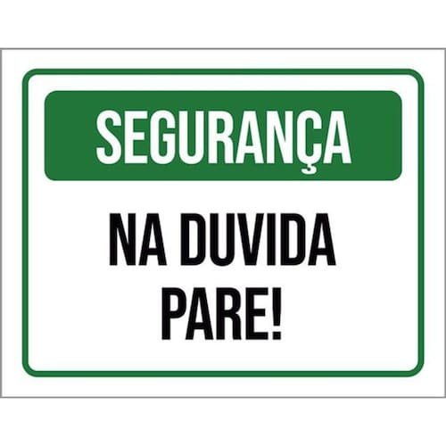 Kit 5 Placas Segurança Na Duvida Pare 36x46 Placas de sinalizaço fabricadas com poliestireno de alto impacto PSAI de 2mm e impressão ultravioleta.