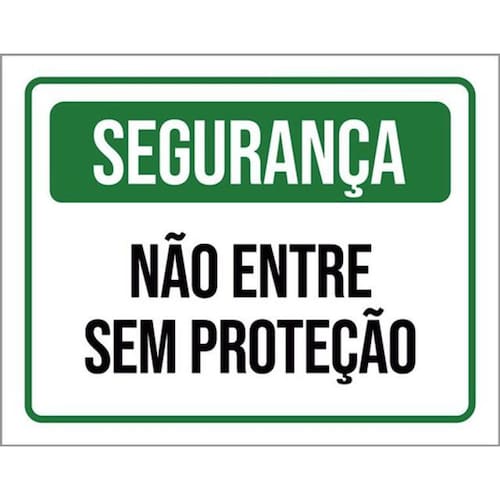 Kit 5 Placas Segurança Não Entre Sem Proteção Verde 36x46 Placas de sinalizaço fabricadas com poliestireno de alto impacto PSAI de 2mm e impressão ultravioleta.