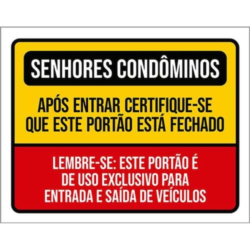 Kit 5 Placas Senhores Condôminos Portão Fechado Placas de sinalizaço fabricadas com poliestireno de alto impacto PSAI de 2mm e impressão ultravioleta.