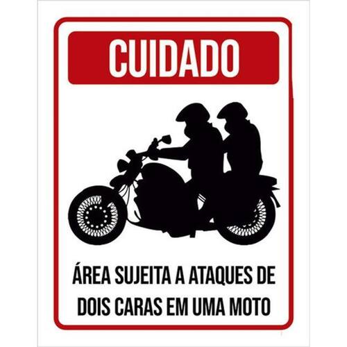 Kit 5 Placas Sinalização Cuidado Ataques Dois Caras Uma Moto
