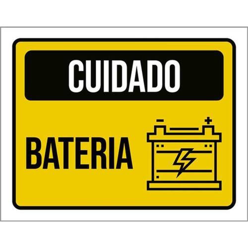 Kit 5 Placas Sinalização - Cuidado Bateria Amarela Ícone Placas de sinalizaço fabricadas com poliestireno de alto impacto PSAI de 2mm e impressão ultravioleta.