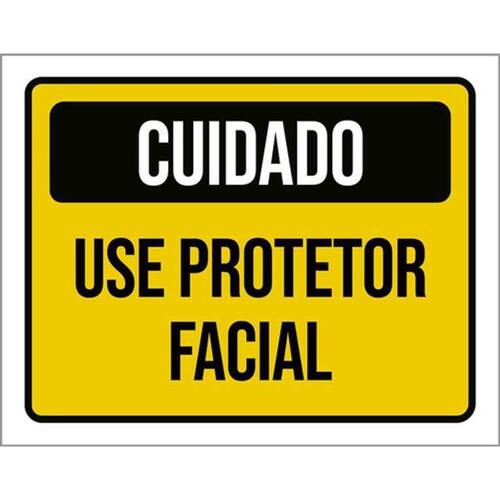 Kit 5 Placas Sinalização - Cuidado Use Protetor Facial Placas de sinalizaço fabricadas com poliestireno de alto impacto PSAI de 2mm e impressão ultravioleta.
