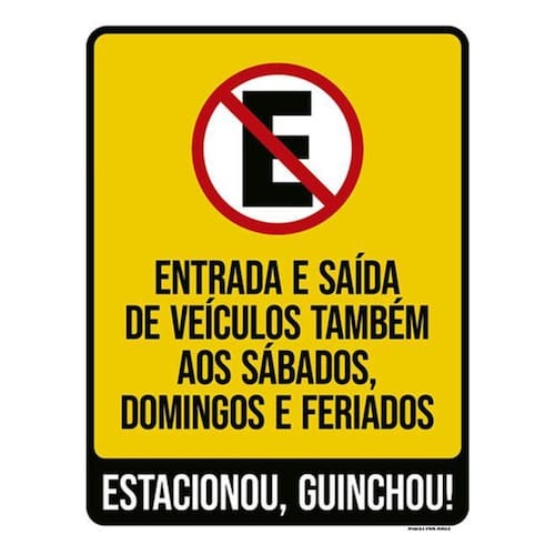 Kit 5 Placas Sinalização - Estacionou Guinchou Placas de sinalizaço fabricadas com poliestireno de alto impacto PSAI de 2mm e impressão ultravioleta.