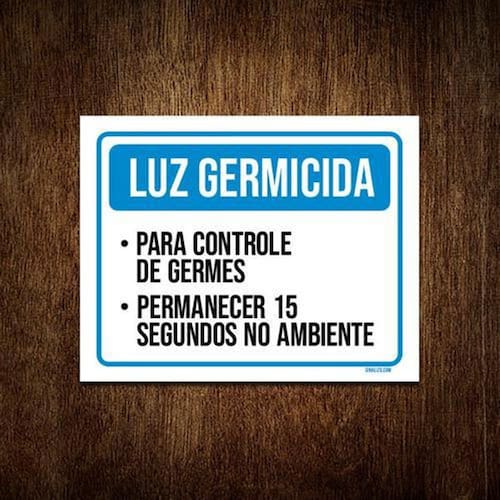 Kit 5 Placas Sinalização Luz Germicida - Informações do Produto: Kit com 5 placas decorativas iguais fabricadas com poliestireno de alto impacto PSAI de 2mm e adesivo vinil automotivo de alta performance. - Medidas: 18cm x 23cm - Fixação: Todas as placas possuem adesivo dupla face para aplicação em qualquer tipo de superfície lisa. de 12 meses e disponibilidade imediata. Marca: Não Informado