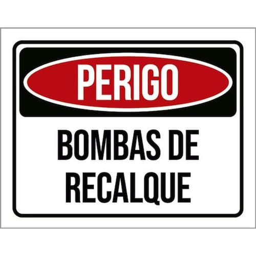 Kit 5 Placas Sinalização - Perigo Bombas Recalque Placas de sinalizaço fabricadas com poliestireno de alto impacto PSAI de 2mm e impressão ultravioleta.