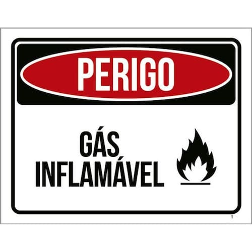 Kit 5 Placas Sinalização - Perigo Gás Inflamável Placas de sinalizaço fabricadas com poliestireno de alto impacto PSAI de 2mm e impressão ultravioleta.