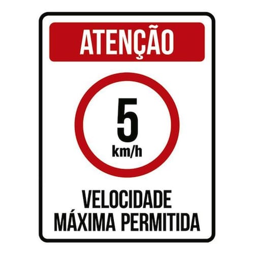 Kit 5 Placas Sinalização - Velocidade Máxima 5km Máximo Placas de sinalizaço fabricadas com poliestireno de alto impacto PSAI de 2mm e impressão ultravioleta.
