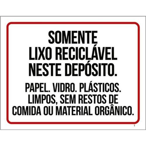 Kit 5 Placas Somente Lixo Reciclável Neste Depósito Vidro Placas de sinalizaço fabricadas com poliestireno de alto impacto PSAI de 2mm e impressão ultravioleta.
