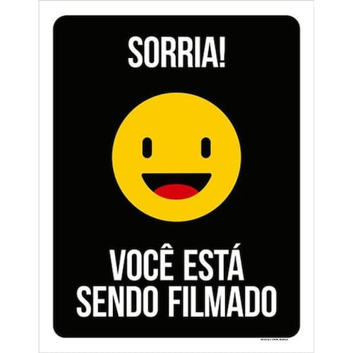 Kit 5 Placas Sorria Você Está Sendo Filmado 36x46 Placas de sinalizaço fabricadas com poliestireno de alto impacto PSAI de 2mm e impressão ultravioleta.
