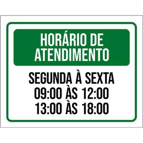Kit 5 Placas Verde - Horário Atendimento Segunda Sexta