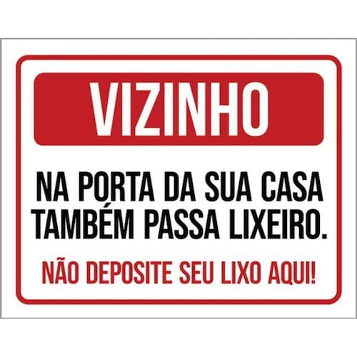 Kit 5 Placas Vizinho Não Deposite Seu Lixo Aqui 36x46 Placas de sinalizaço fabricadas com poliestireno de alto impacto PSAI de 2mm e impressão ultravioleta.