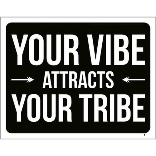 Kit 5 Placas Your Vibe Attracts Your Tribe 36x46 Placas de sinalizaço fabricadas com poliestireno de alto impacto PSAI de 2mm e impressão ultravioleta.