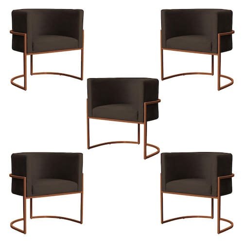 Kit 5 Poltronas Decorativa Luana Base Bronze Veludo Marrom uma Poltrona que trás vida ao seu ambiente. A Poltrona Luana é a mais inovadora do momento, com sua base em metal deixa o design mais sofisticado, e claro o conforto que essa Poltrona proporciona. Cada detalhe feita com matéria-prima de ótima qualidade, garantindo durabilidade do produto.