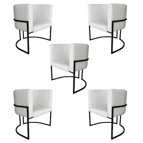 Kit 5 Poltronas Decorativa Luana Base Preta PU Branco - Montanaris Decor