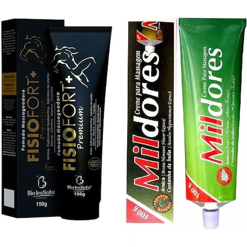 Kit 5 Pomada FisioFort Premium 150g + 5 Pomada Mil Dores Kit 5 Pomada FisioFort Premium 150g + 5 Pomada Mil Dores 100g Este Kit Contém: _ 5 Pomada massageadora FisioFort + Premium150g _ 5 Pomada Massageadora Mil Dores 150g