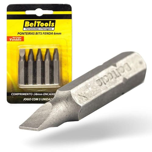 Kit 5 Ponta Bit Fenda CV 38mm x 5/16 x 6,0mm Beltools