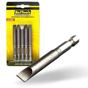 Kit 5 Ponta Bit Fenda CV 75mm x 1/4 x 8,0mm Beltools