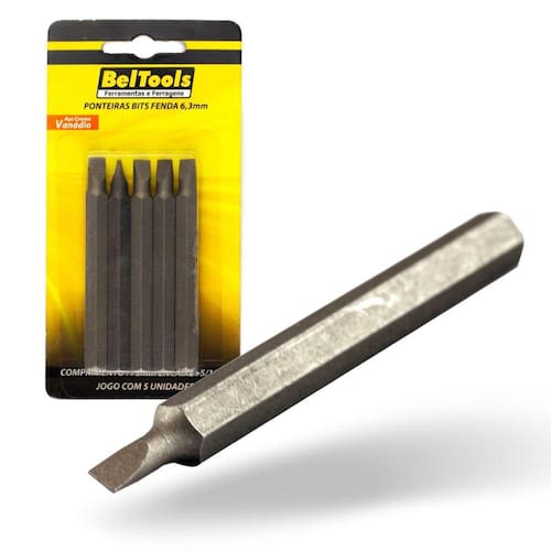 Kit 5 Ponta Bit Fenda CV 75mm x 5/16 x 6,3mm Beltools
