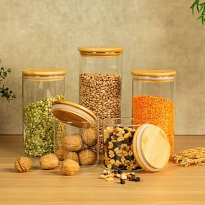 Esses são os potes de vidro hermético redondo de 500, 1100 e 1650ml para mantimentos com tampa de bambu da OIKOS. Não julgue pelas aparências, ele não é só um potinho bonito: com a combinação da vedação de silicone e o bambu antibacteriano, esse pote se torna um verdadeiro mestre na conservação de alimentos! E não é só de comida que vive esse pote: pisca-pisca, pregadores de roupa, decoração de Natal, nozes, flores secas, fios, jogos e o que mais você quiser guardar - isso que é versatilidade.